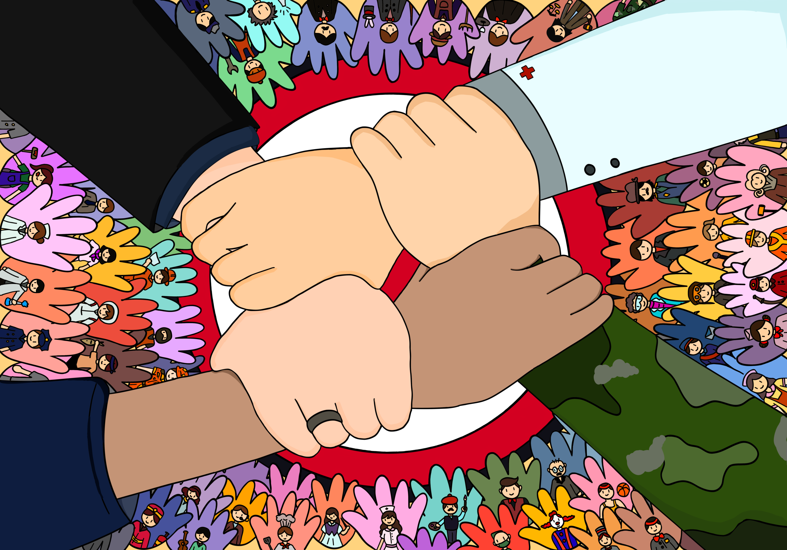 Concept: If we all have love and faith in each other, peace and justice among people in society will bring happiness based on sustainable quality of life.