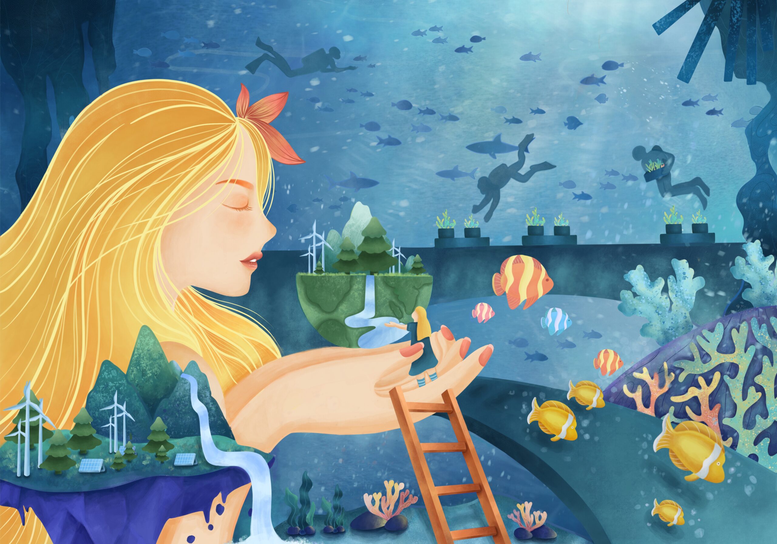 Concept: Environmental conservation to keep oceans complete and abundant, because oceans drive various systems for all living things on Earth. If oceans are clean, abundant, and have coral reefs for fish to inhabit, it also helps prevent fish from becoming extinct or decreasing in numbers.